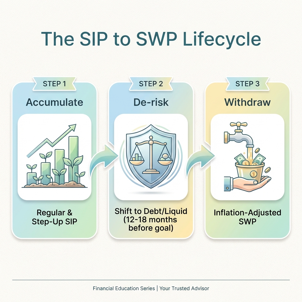 SIP → SWP lifecycle: Accumulate, de-risk, withdraw